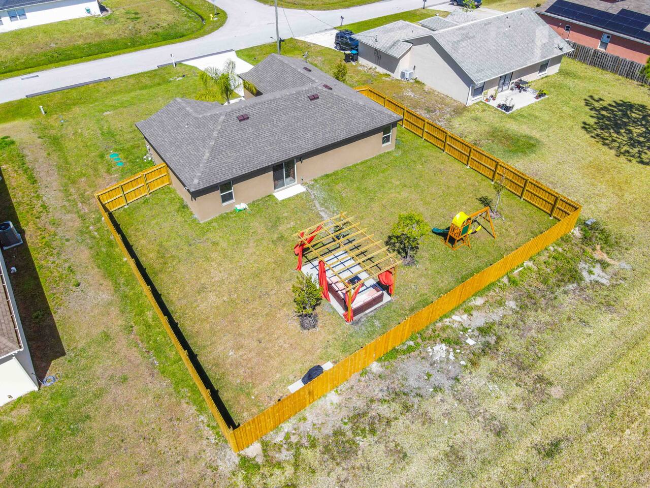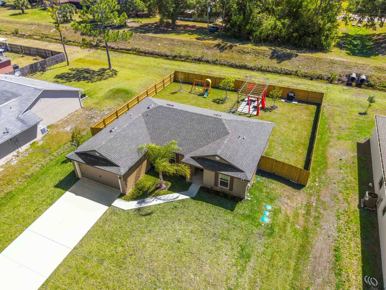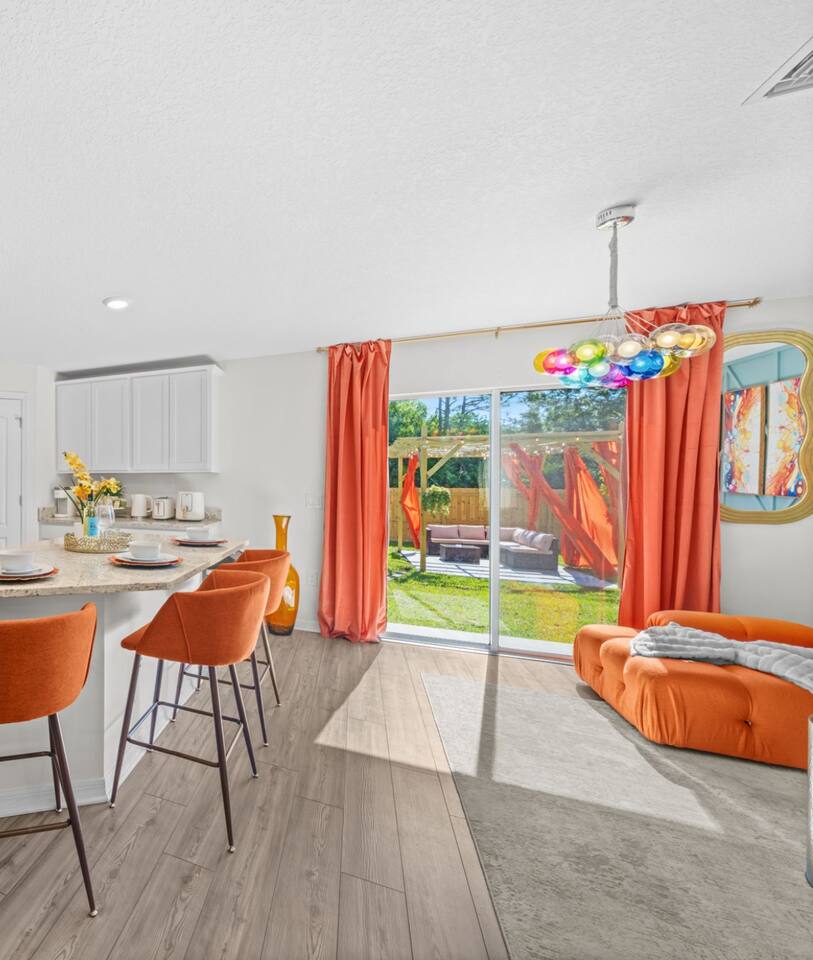 🏡 Welcome to the Encanta Magical! This stunning 3-bed, 2-bath single-family home boasts modern comforts and upscale finishes. Featuring brand new game room, Whirlpool® appliances, spacious countertops, and a master suite with a walk-in closet, it's your ultimate getaway. Enjoy the convenience of a driveway parking of 4 vehicles and nearby access to golf courses and pristine beaches. Sleeps 6 comfortably with one king bed and two queen beds. Book now for an unforgettable Palm Bay experience! 🌴
