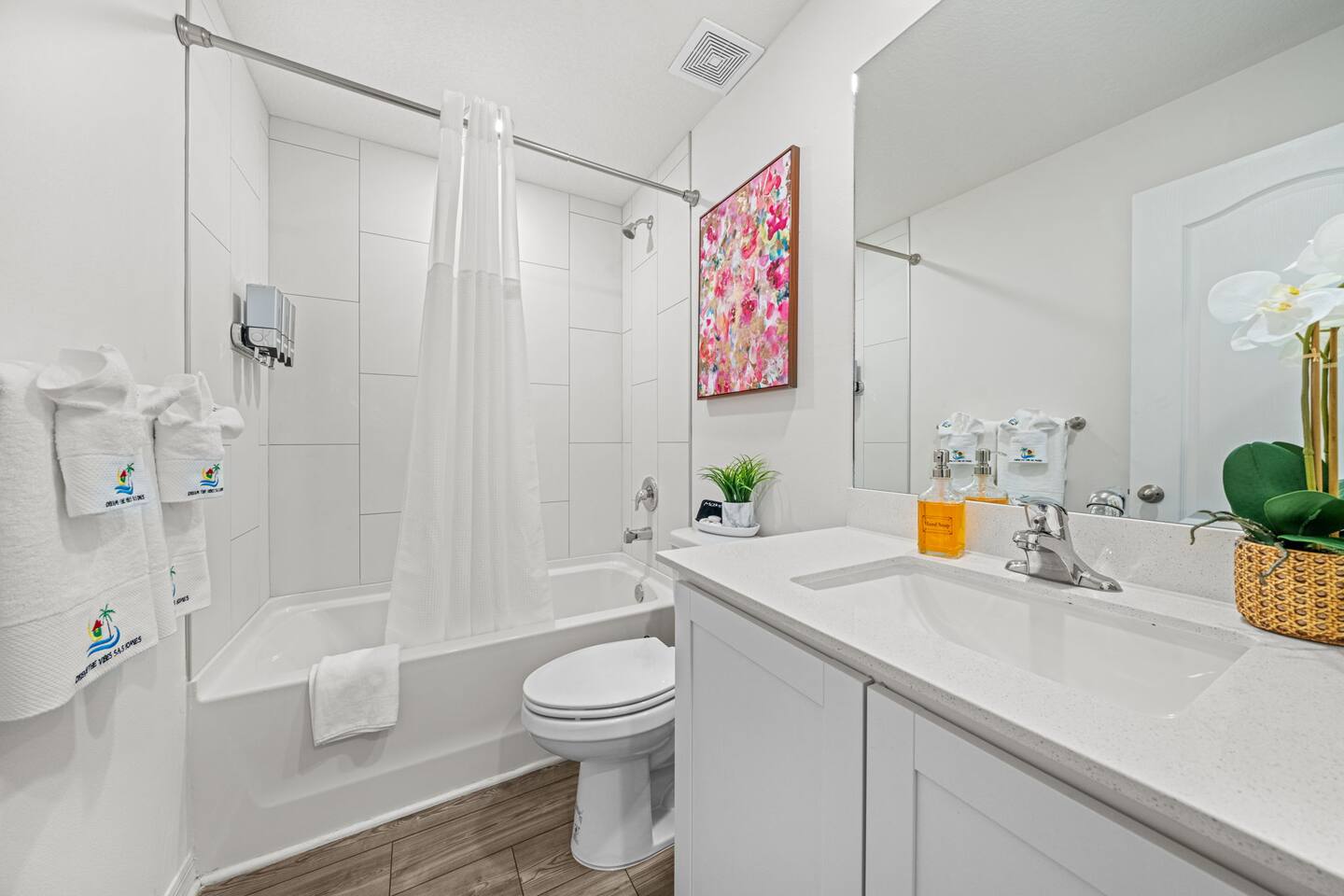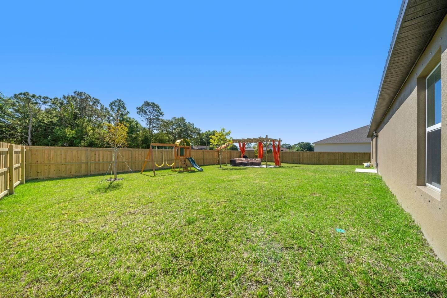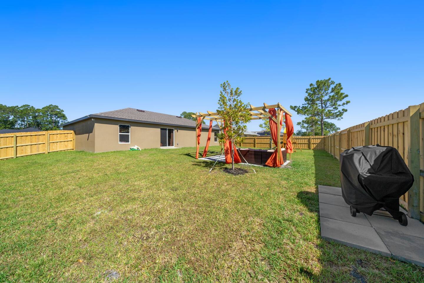 🏡 Welcome to the Encanta Magical! This stunning 3-bed, 2-bath single-family home boasts modern comforts and upscale finishes. Featuring brand new game room, Whirlpool® appliances, spacious countertops, and a master suite with a walk-in closet, it's your ultimate getaway. Enjoy the convenience of a driveway parking of 4 vehicles and nearby access to golf courses and pristine beaches. Sleeps 6 comfortably with one king bed and two queen beds. Book now for an unforgettable Palm Bay experience! 🌴