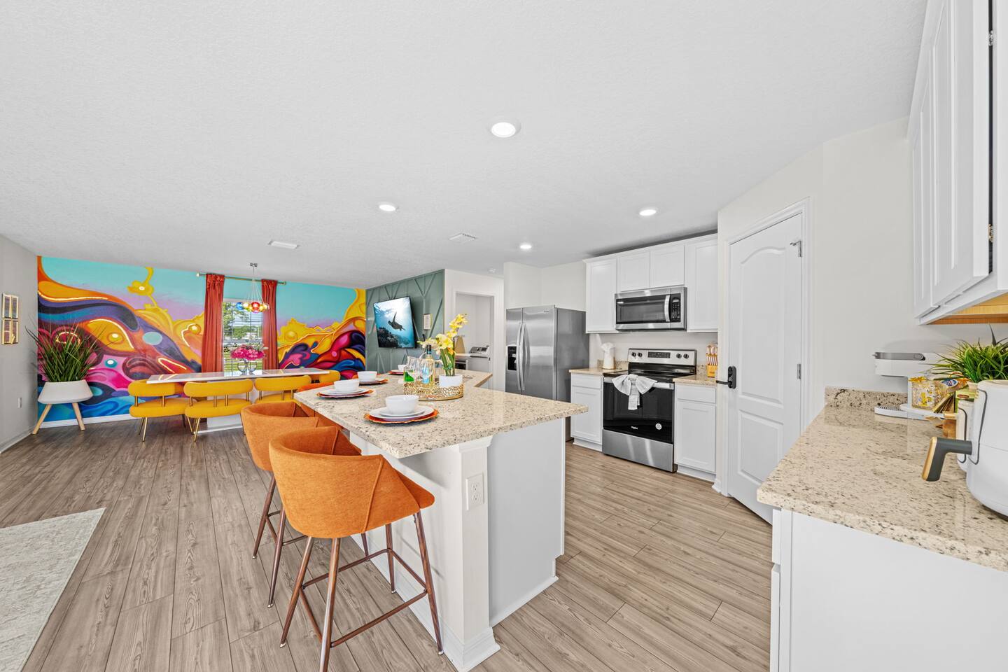 🏡 Discover the ultimate comfort and convenience at the Encanta Magical! This single-family gem features modern amenities and a prime location for a memorable stay. 🌟 🛏️ One king bed, two queen beds. Sleeps 6. 🚗 Driveway parking - Vehicles up to 4 can park easily. ❄️ Central air conditioning for comfort. 🍽️ Spacious countertops and wood cabinets. 🌴 Front yard landscaping for curb appeal. 🏖️ Nearby world-class beaches and golf courses. 🛁 Two full bathrooms, including master suite. 🌟 Open floorplan and kitchen island. 🎮 Game room: pool table, popcorn machine. 🚫 Pets are not allowed in this charming retreat. 🚪 Walk-in closet in the master suite. Book now and experience the perfect blend of luxury and convenience!
