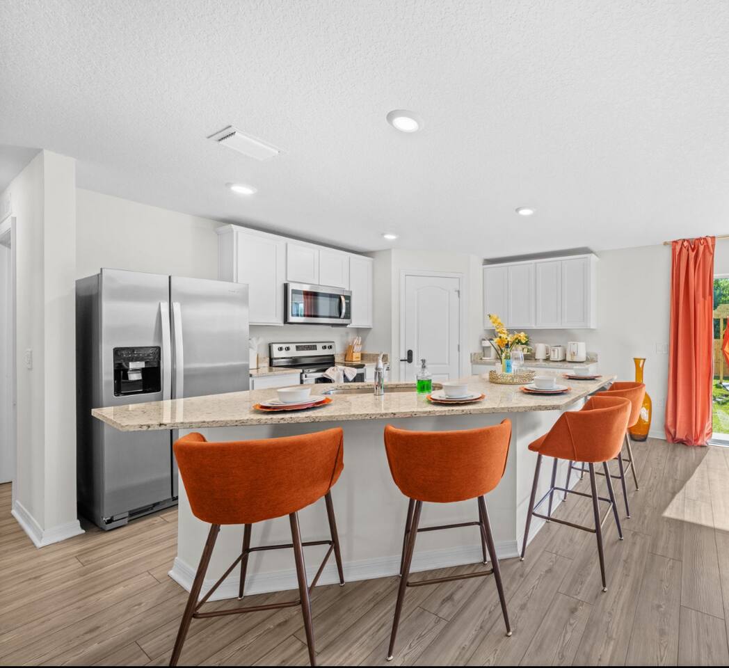 Welcome to your dream getaway at the Encanta Magical! 🌴 This stunning 3-bedroom, 2-bath single-family home offers a luxurious retreat with modern amenities and stylish finishes. From the spacious countertops and wood cabinets in the kitchen to the master suite featuring a sizable walk-in closet, every detail is designed for your comfort and convenience. You will get access to the entire house except the panty which is specifically for our cleaners. Step inside to discover all-new energy-efficient Whirlpool® appliances in the kitchen, perfect for preparing delicious meals during your stay. The game room will feature a pool table and a popcorn machine for endless entertainment. The driveway parking provides convenient parking for 4 vehicles, while the front yard landscaping enhances the curb appeal of this beautiful home. Plus, with washer and dryer hookups available, you can easily keep your clothes fresh throughout your vacation. Located in the premier community of Palm Bay, you'll have access to nearby golf courses, world-class beaches, and amenity-packed parks, ensuring endless opportunities for relaxation and recreation. Whether you're lounging in the spacious living room, enjoying a meal in the dining room, or unwinding on the patio, the Caladesi at Palm Bay offers the perfect blend of comfort and luxury for your next escape. Book now and experience the ultimate getaway in paradise! ⛳🏖️