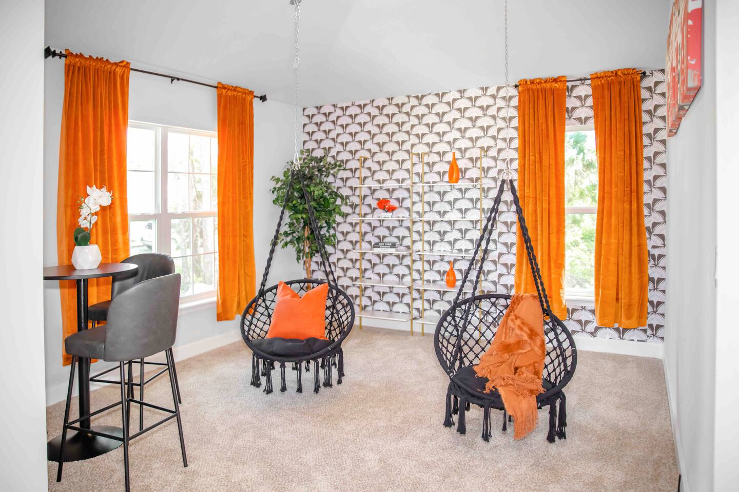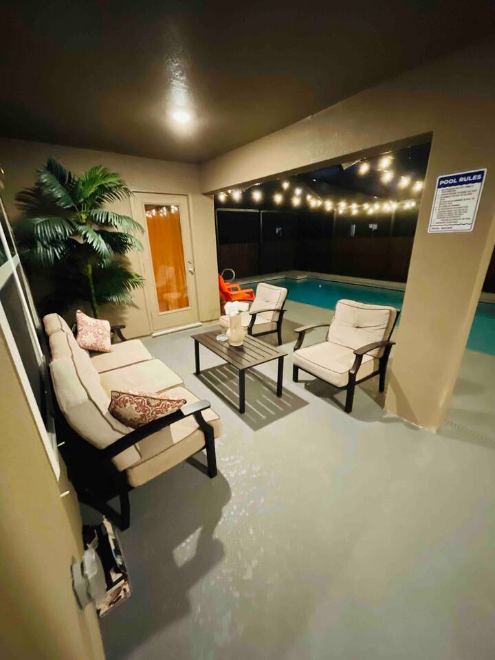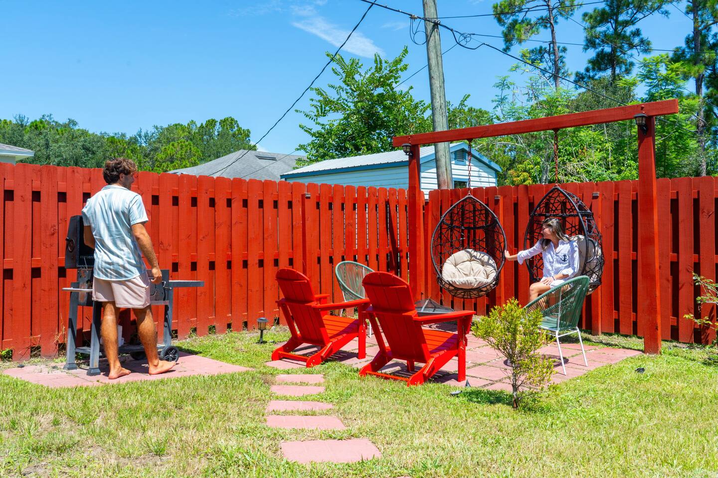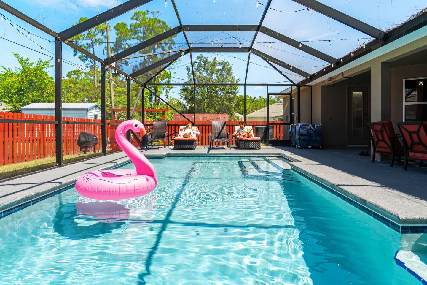 Welcome to our stylish Palm Bay retreat! This modern, spacious home is designed for comfort and relaxation, featuring upscale amenities and a prime location for your Florida getaway. Enjoy a fully equipped kitchen, vibrant décor, and cozy living spaces. Unwind in our living space or outdoor seating areas, by the Pool perfect for making lasting memories. Please note: Indoor black swings are decorative; outdoor swings are for use. Book your stay and experience the charm of this beautiful home!