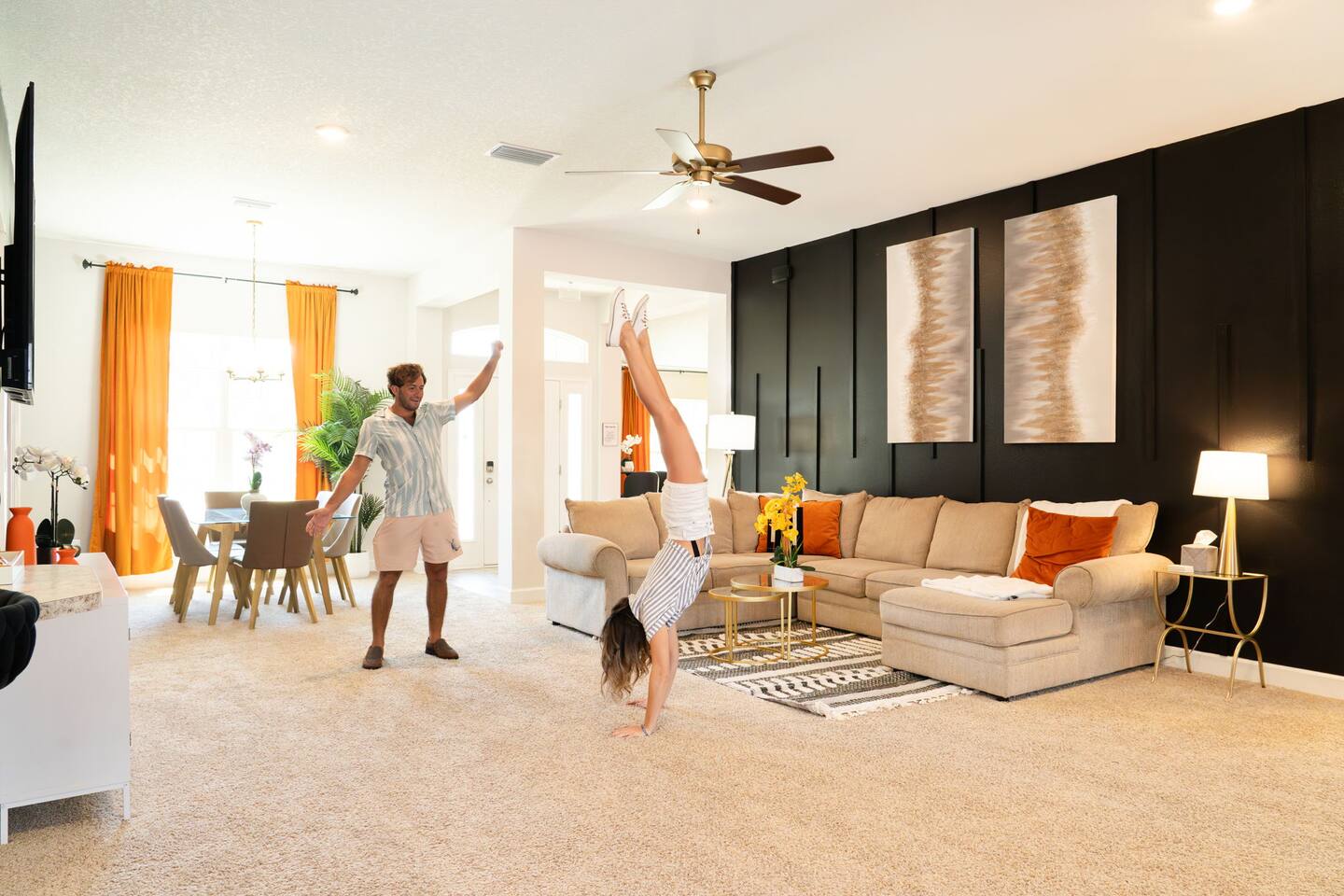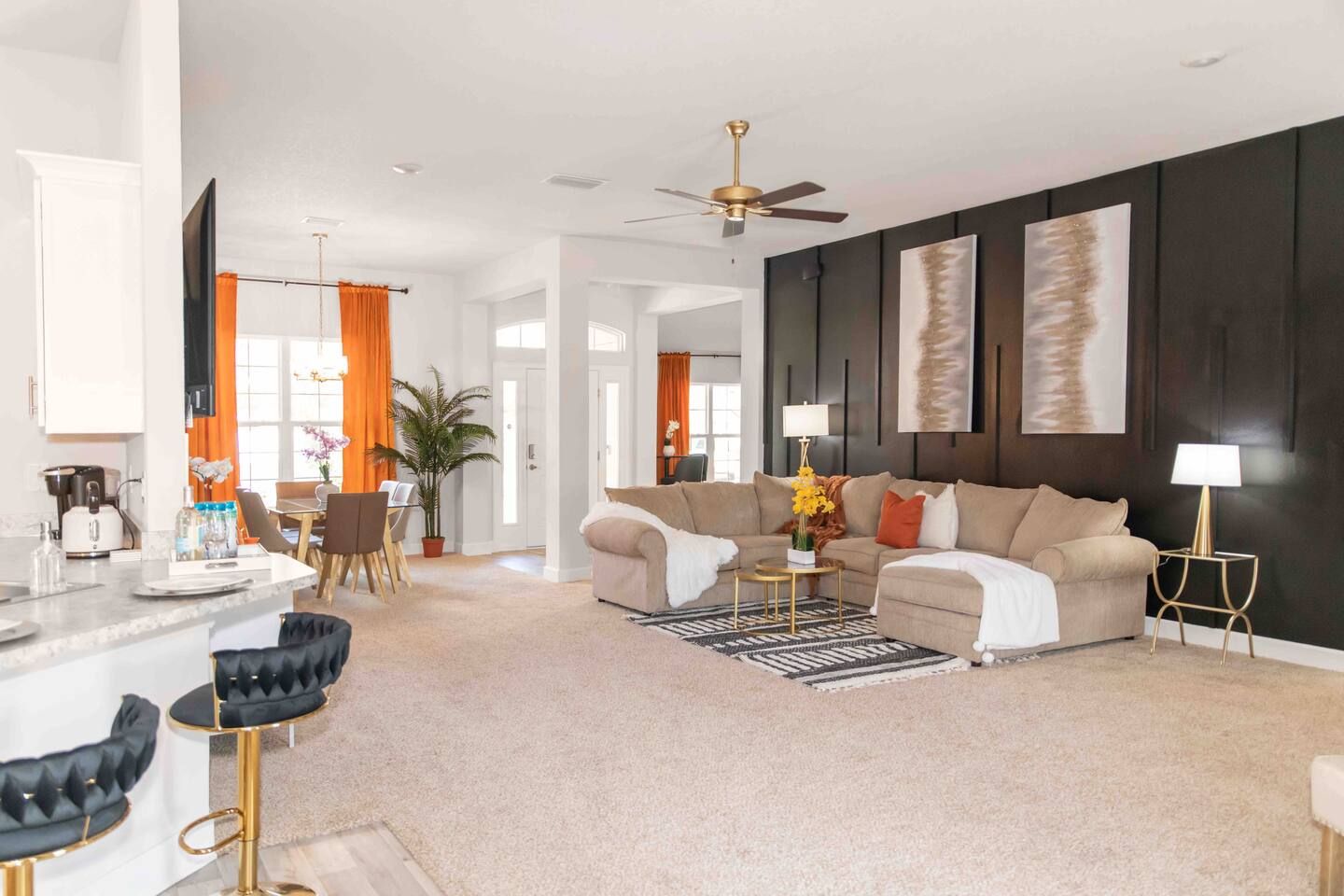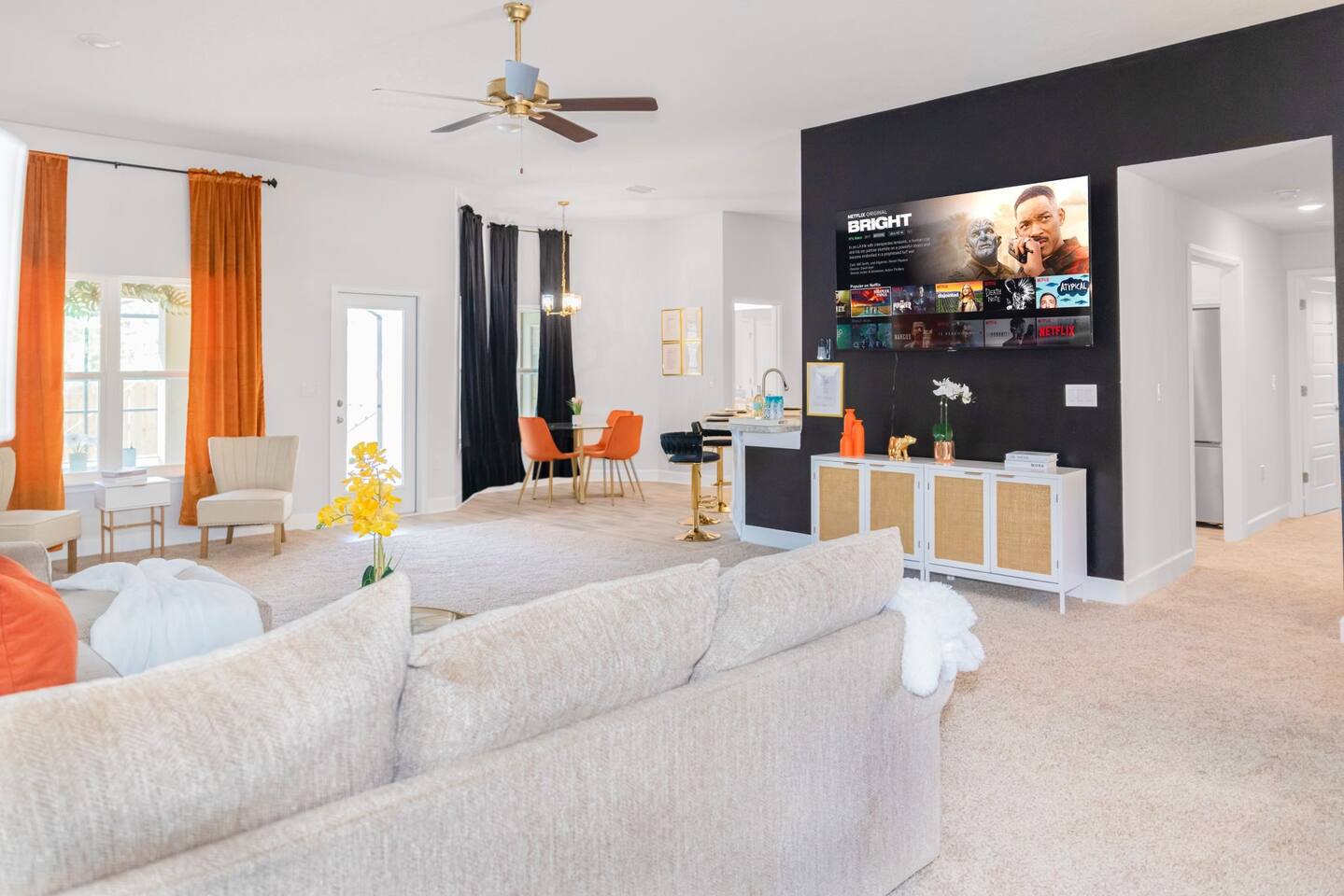 Our home features a beautifully designed interior with a spacious living area that includes a cozy sofa set and a large TV, ideal for relaxing evenings. The house is air-conditioned and has ceiling fans to ensure your comfort in Florida's warm climate. The dedicated workspace with Wi-Fi access provides a quiet corner for those needing to stay connected. The kitchen, a chef's delight, is fully equipped with cooking basics, a variety of appliances including a dishwasher, microwave, oven, and a coffee maker, ensuring you have everything you need for a home-cooked meal. The dining area, adjacent to the kitchen, features a large dining table perfect for family dinners. Our bedrooms are thoughtfully designed, providing a peaceful retreat after a day of exploration. The beds are comfortable, complete with high-quality linens. Bathrooms are stocked with essentials like shampoo, conditioner, and body soap, adding to your convenience. 🌟 Enhance Your Stay with Pool Heating! 🏊♂️🌡️ Dive into ultimate relaxation by opting for our pool heating service! Our pool is designed to reach a comfortable 86°F, providing a blissful experience. For a nominal fee of $40 per night, you can enjoy the warmth throughout your stay. ***A heated pool does not feel like Jacuzzi Hot Tub. It feels refreshingly and comfortable. To ensure your perfect swim, please notify us at least 24 hours before your stay, allowing ample time for the pool to reach its ideal temperature. Make your getaway even more delightful with our inviting heated pool experience! 🔥